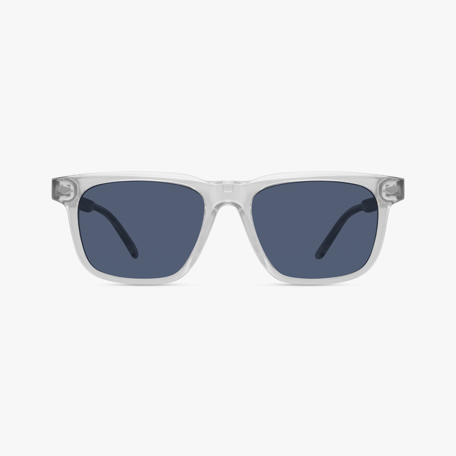 A clean, confident square shape with a hint of retro edge. The wide front gives it a cool, laid-back attitude, while the transparent temple options show off the wire core inside. Light, durable, and with clip-on sun lenses for instant style outdoors.